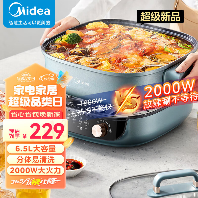 美的(Midea)电火锅 电煮锅火锅专用锅 电锅火锅锅多功能锅分体式家用电热锅电炒锅 6.5L多用途锅 MC-HGS303007价格:229.00元!