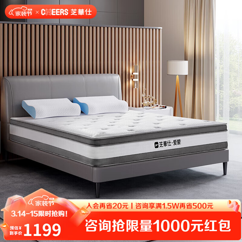 芝华仕(CHEERS)乳胶床垫独立弹簧软硬两用席梦思 D026 青少年版1.5米A价格:1199.00元!