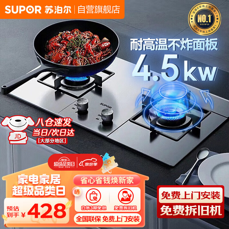 苏泊尔(SUPOR)燃气灶家用天然气灶不锈钢液化气灶双灶台式嵌入式两用灶具NS21 【罐装液化气】4.5KW聚能猛火价格:428.00元!