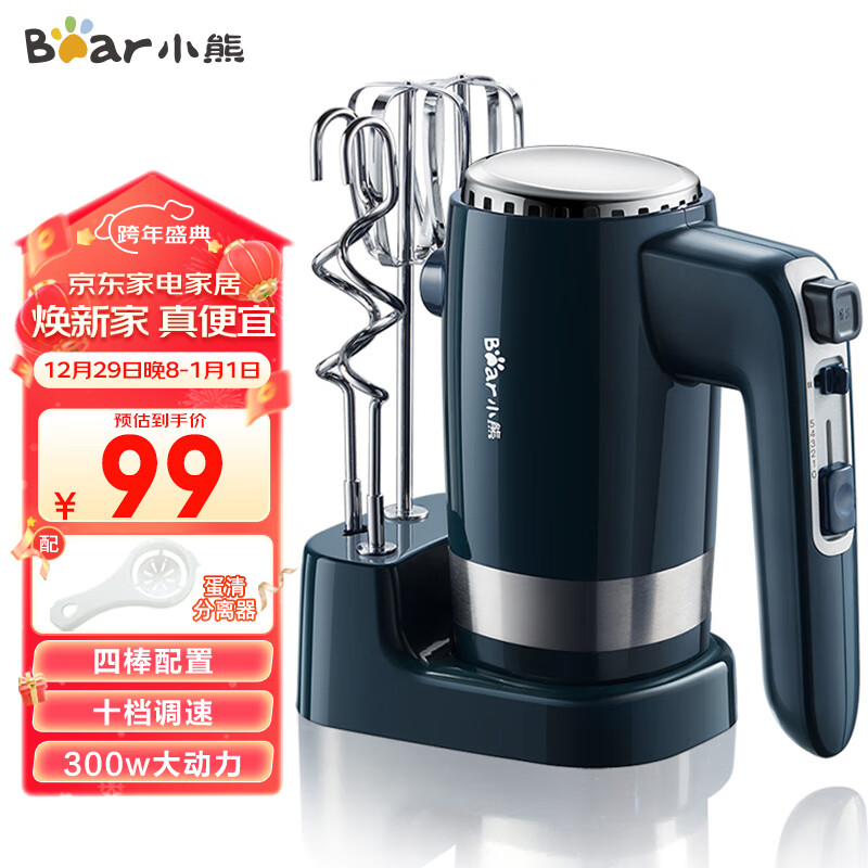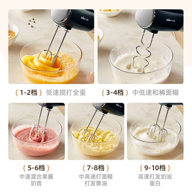 小熊(Bear)打蛋器 家用电动打蛋器 奶油奶盖打发器迷你 烘焙手持搅拌器和面糊 四棒十档 DDQ-B02L1价格:99.00元!