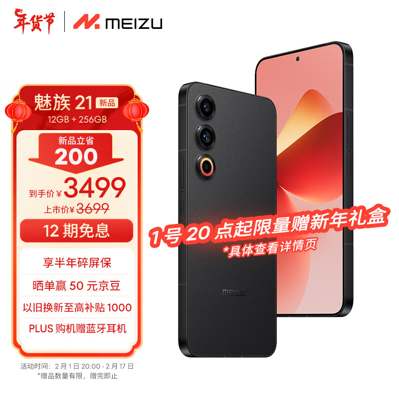 魅族(MEIZU)21 12GB+256GB 无界黑 1.74mm极窄四等边直屏 骁龙8Gen3 2亿像素 80W超充 5G游戏学生拍照手机价格:3499.00元!