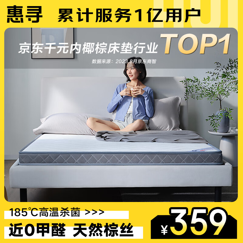 惠寻 京东自有品牌 椰棕床垫硬棕垫薄床垫偏硬无胶水1.35*2米10cm厚价格:359.00元!