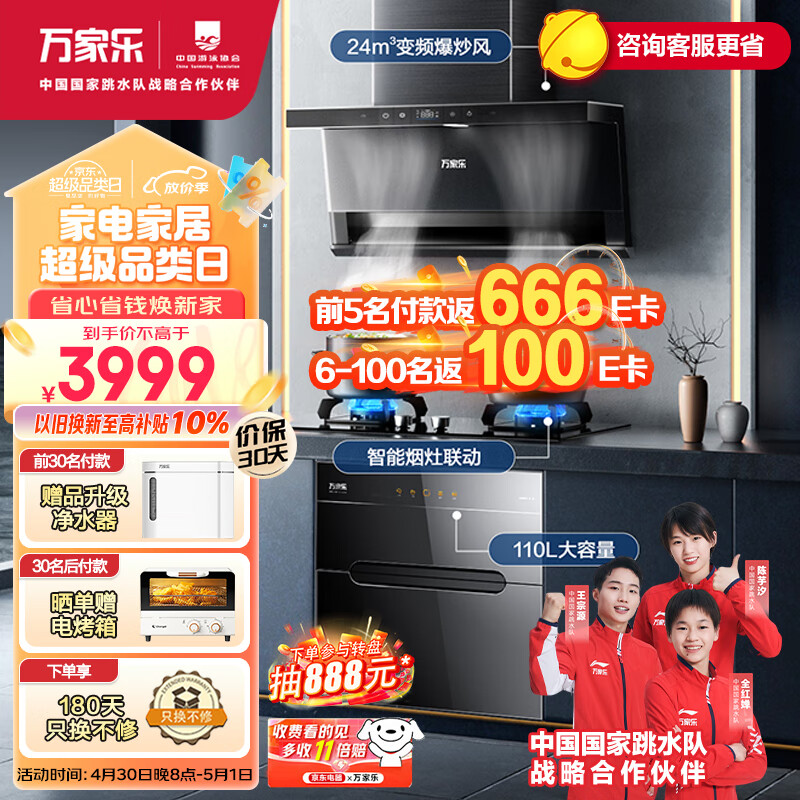 万家乐 抽油烟机烟灶消厨房三件套24m3/min顶侧三吸变频巡航烟灶联动厨房三件套TAK8+KV063B+DQ052天然气价格:4199.00元!
