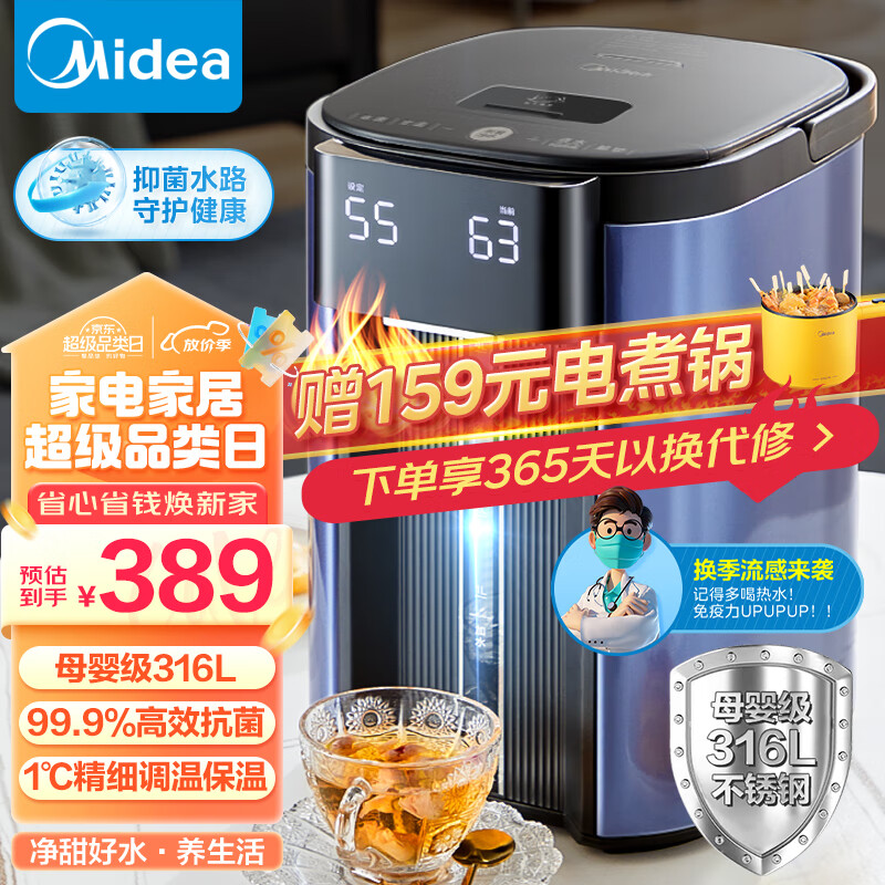美的(Midea)电热水瓶电热水壶316L不锈钢热水瓶5L家用办公多段智能控温恒温水壶净甜开水壶烧水壶SP1A价格:358.00元!