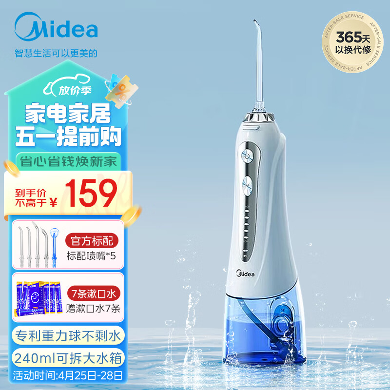 美的(Midea)冲牙器 洗牙器 水牙线 预防牙结石家用便携礼物 重力球专利MC-BJ0101小蓝鲸-银 生日礼物送男女友价格:159.00元!