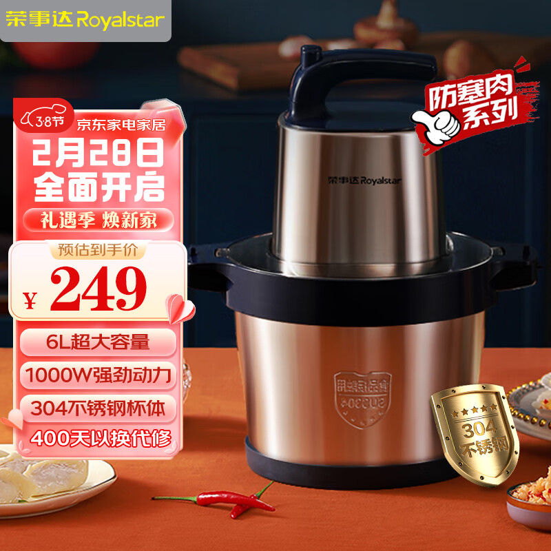 荣事达(Royalstar)绞肉机家用电动多功能料理机搅拌切菜绞馅不锈钢碎肉RS-JR80C2价格:239.00元!