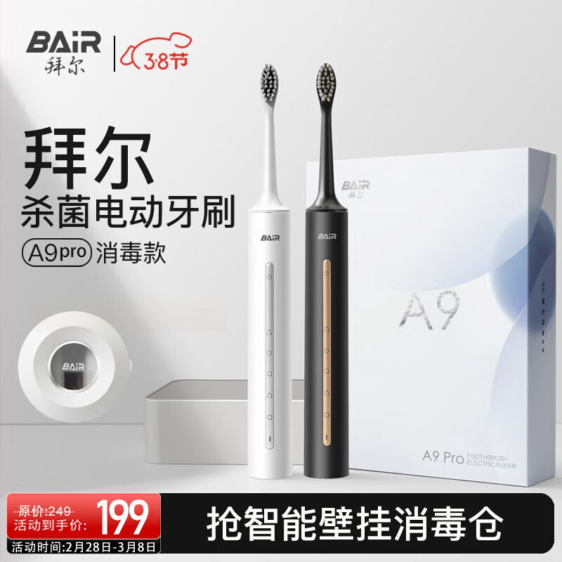 拜尔A9pro 智能杀菌电动牙刷成人声波充电式震动软毛情侣学生党智能自动男女士 送女朋友 云白价格:199.00元!