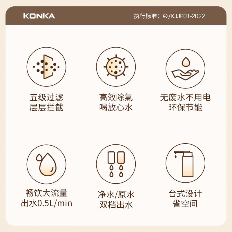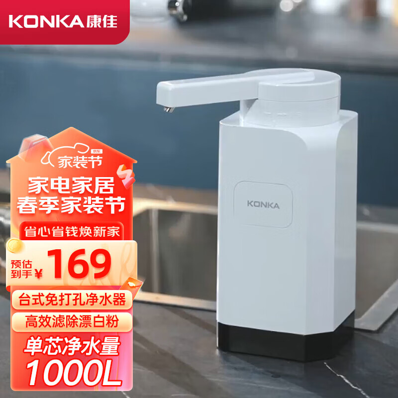 康佳(KONKA)净水器水龙头 台式前置超滤 自来水过滤器 5重净水机 简易安装 可用一年滤芯 KPW-TJ02价格:169.00元!