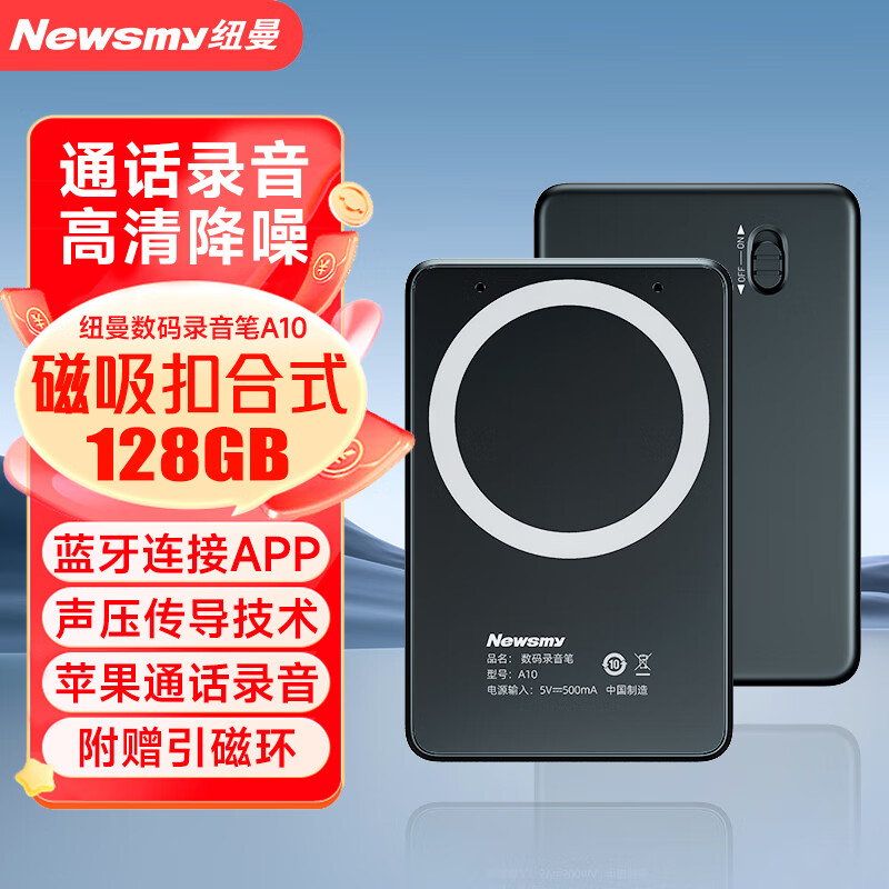 纽曼磁吸扣合式录音笔 A10 128G 电话通话录音器 声压传导技术 适用iPhone15/14/13/12等机型价格:399.00元!