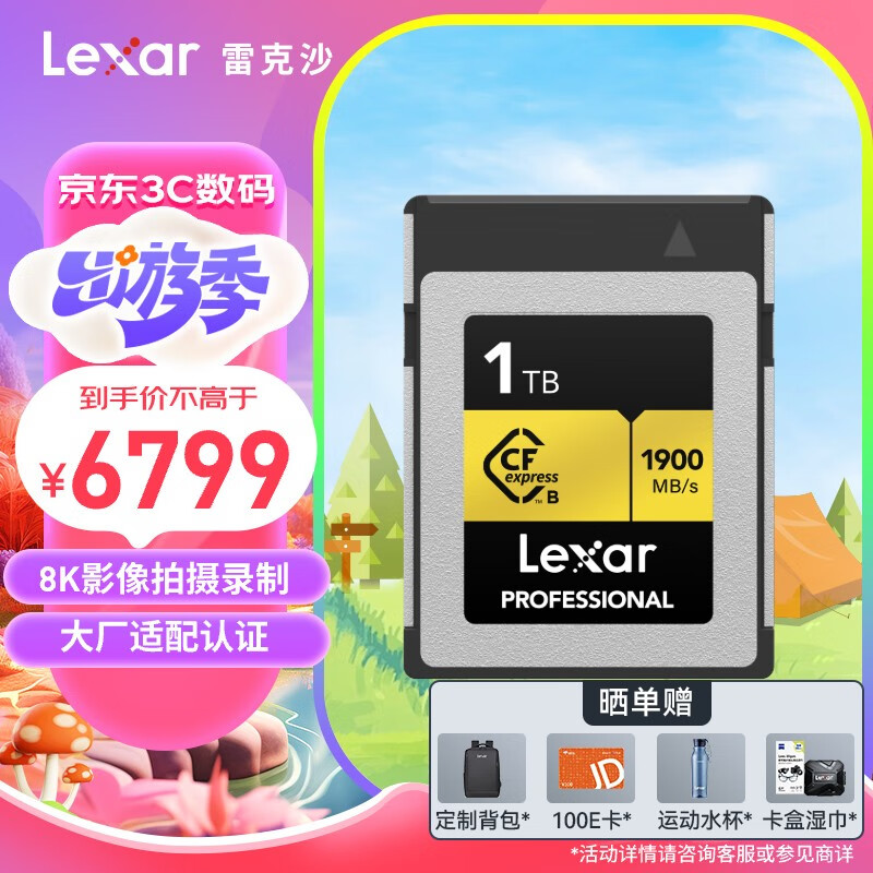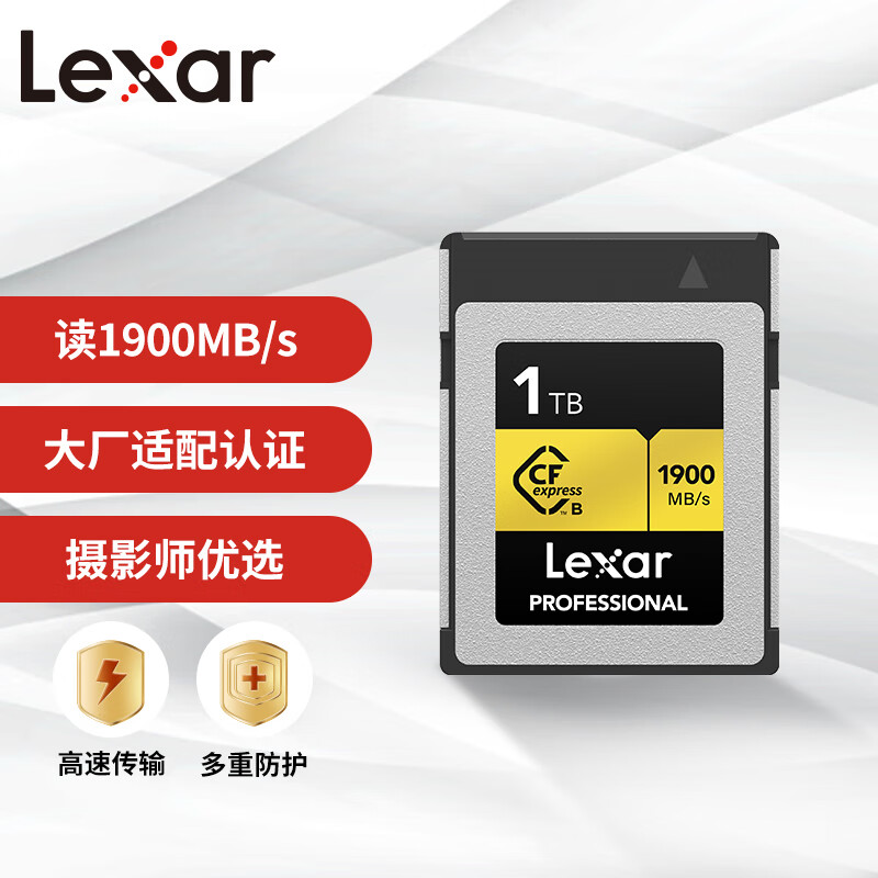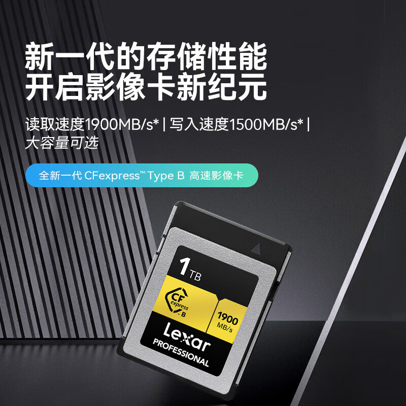 雷克沙(Lexar)1TB CFexpress Type B存储卡 读1900MB/s 富士佳能尼康原厂推荐 8K录制 cfe内存卡(GOLD)价格:6799.00元!