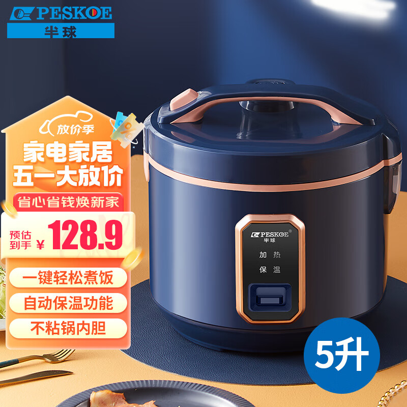 半球(PESKOE)电饭煲5L电饭锅 MW-R50C5B价格:128.90元!