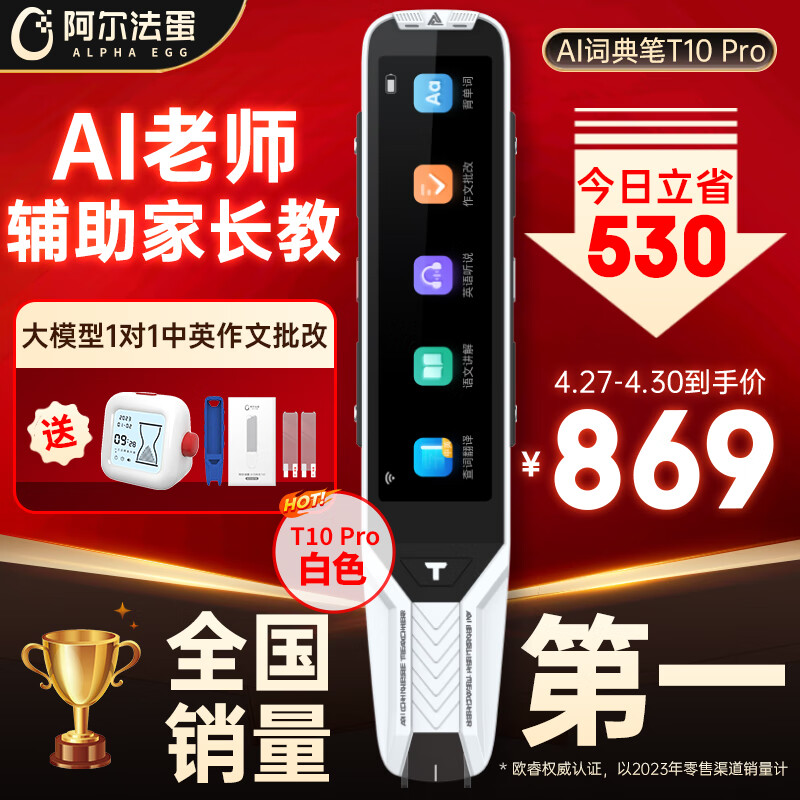 阿尔法蛋AI词典笔T10 Pro 点读笔英语学习翻译神器 电子词典翻译笔翻译机 扫描笔单词笔扫读笔 白色价格:869.00元!