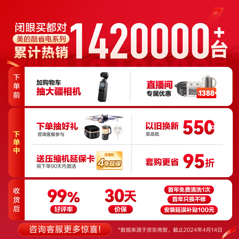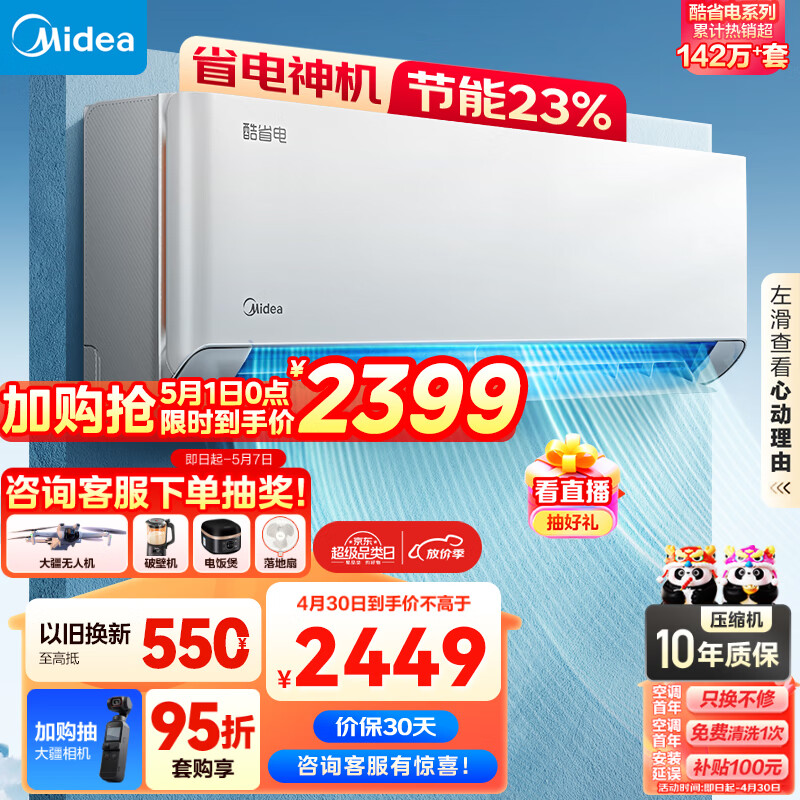 美的(Midea)空调 酷省电 变频冷暖 自清洁 智能低噪空调挂机壁挂式卧室空调挂机 1.5匹 KFR-35GW/N8KS1-3价格:2449.00元!