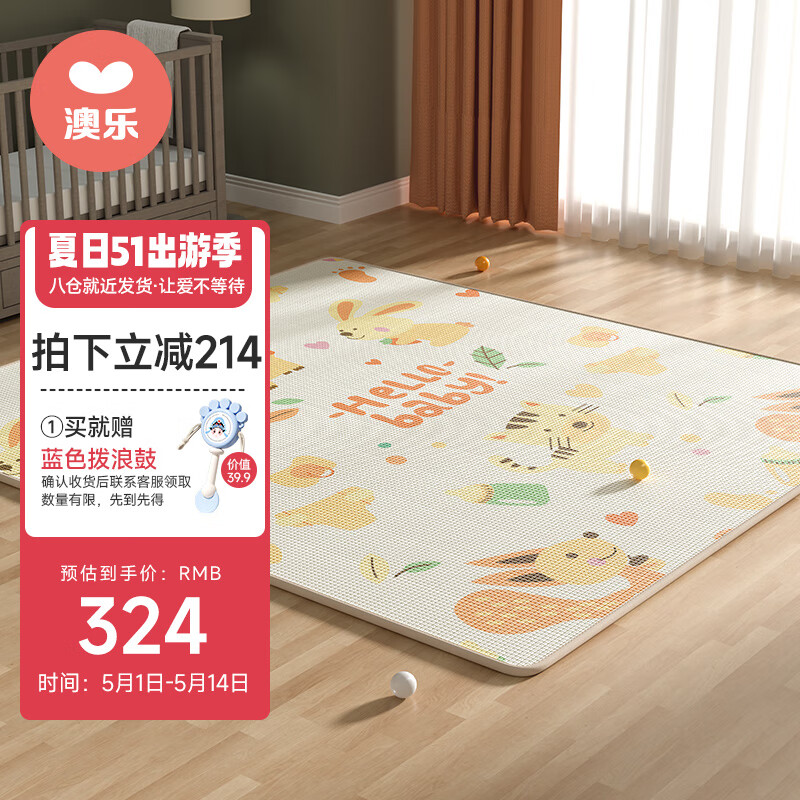 澳乐宝宝xpe爬行垫加厚儿童地垫爬爬垫动物园+独角兽225*180*2cm礼物价格:538.00元!