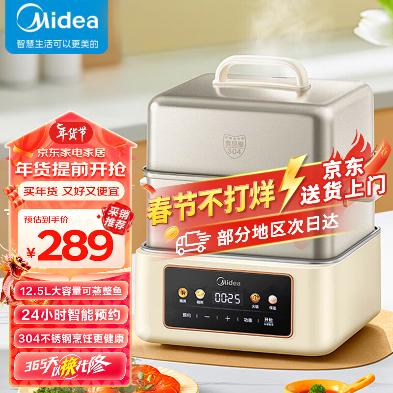 美的(Midea)电蒸锅 电煮锅电火锅 火锅多功能锅家用蒸包子锅 电热锅多用途锅24小时预约双层蒸笼MZ-ZGC262388价格:319.00元!