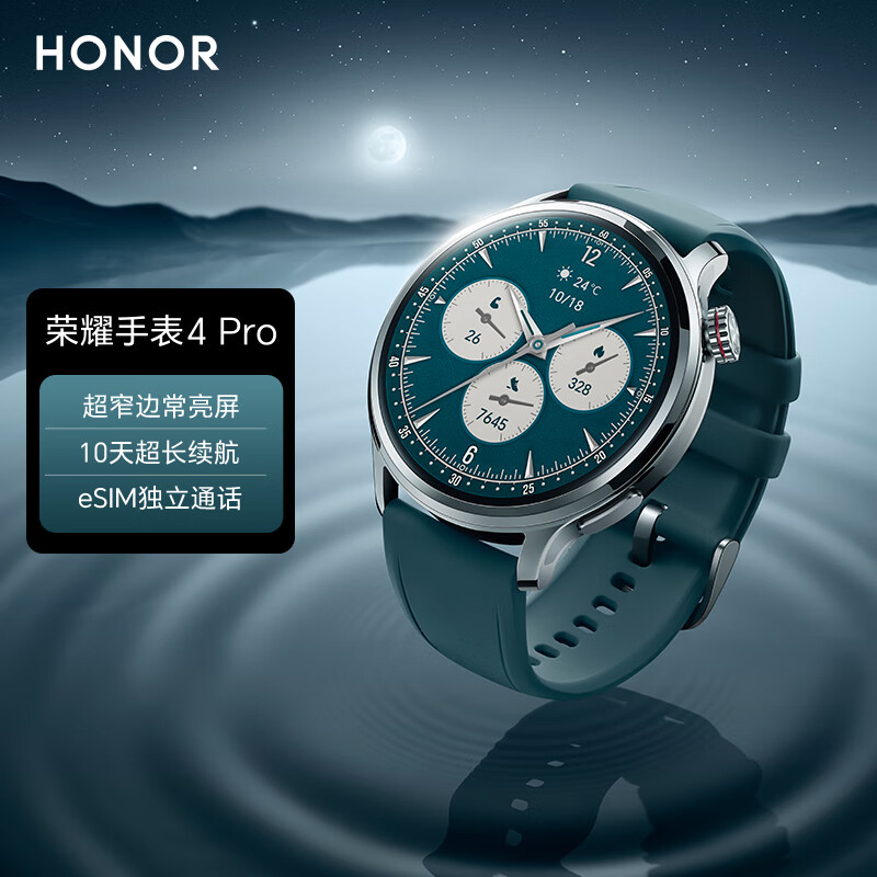荣耀手表4 Pro 青色 超窄边常亮屏 10天eSIM超长续航 心率血氧监测 运动智能手表 龙年表盘新年礼物价格:1599.00元!