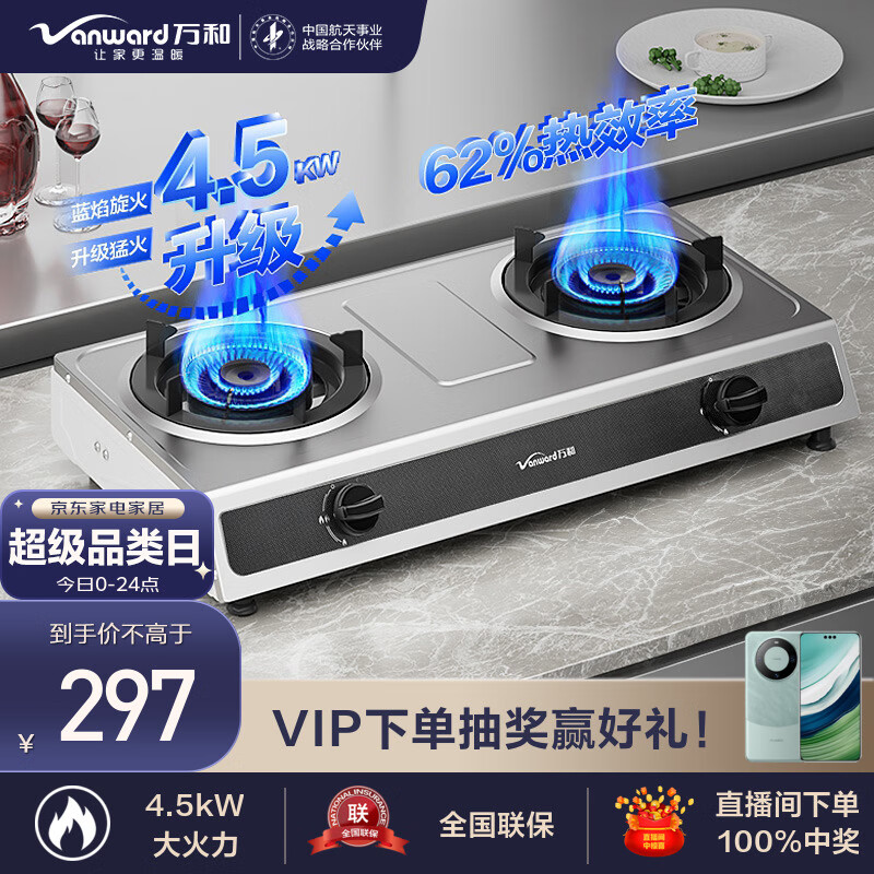 万和(Vanward)燃气灶具 家用台式不锈钢燃气灶 液化气双灶具 煤气炉煤气灶台 4.5kW大火力 JZY-D9B28(液化气)价格:297.00元!