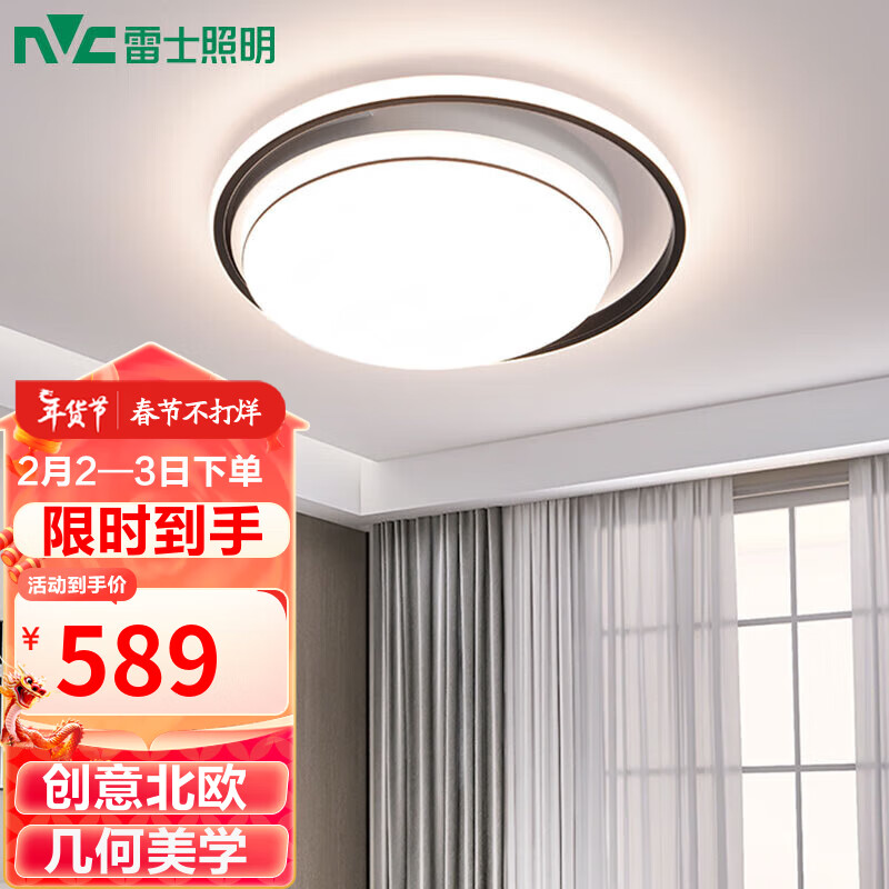 雷士(NVC)客厅灯后现代简约LED吸顶灯北欧创意房间灯【悠然圆】价格:600.00元!