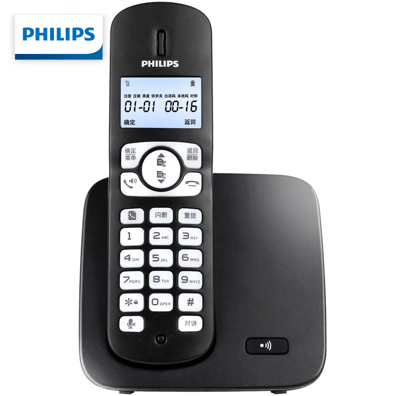 飞利浦(PHILIPS)无绳电话机 无线座机 子母机 办公家用 屏幕白色背光 全新升级 DCTG1861G 黑色价格:239.00元!