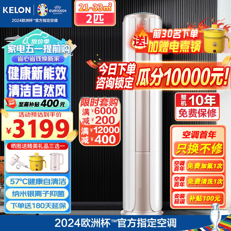科龙(KELON)空调2匹变频冷暖新能效智能双清洁 客厅圆柱空调立式柜机智能WiFi大风口送风KFR50LW/FM1A3价格:3189.00元!