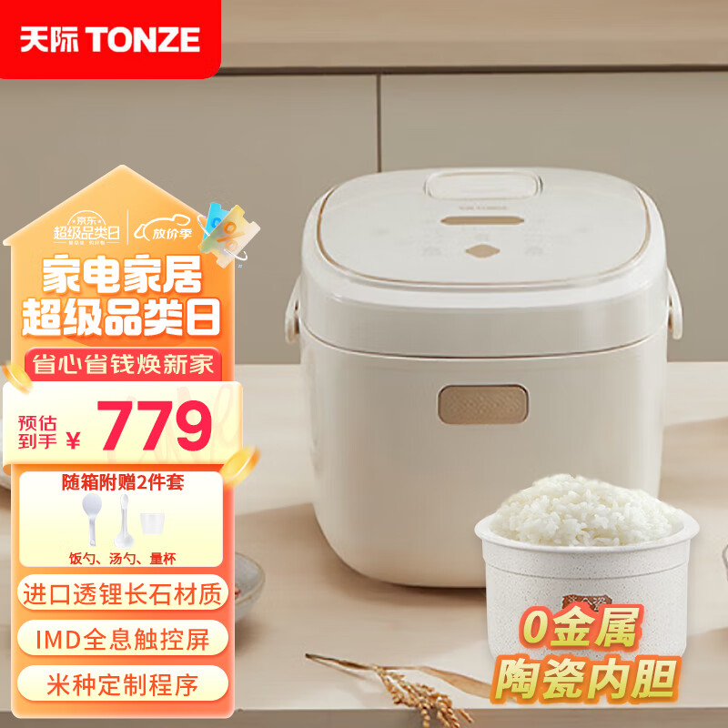 天际(TONZE)电饭煲3L 家用陶瓷内胆不粘电饭锅 大容量智能预约0涂层饭煲多功能2-6人煮粥蒸米饭锅 BYQC22C30GC价格:779.00元!