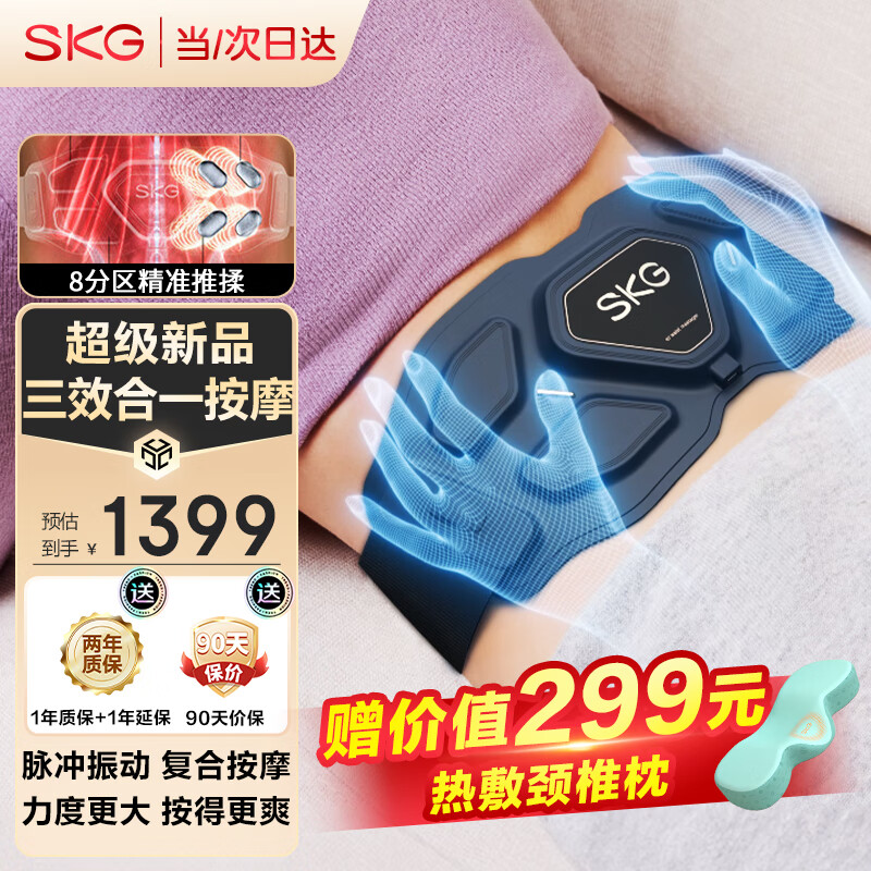 SKG腰部按摩器金腰带热敷护腰物理脉冲揉捏按摩仪 母亲节礼物实用送妈妈生日送男女友老婆礼品 【尊享宝石蓝】G7豪华款价格:1599.00元!