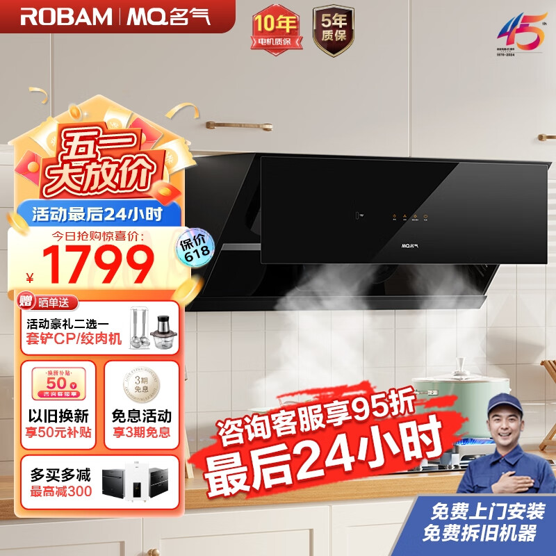 名气(MQ)老板抽油烟机侧吸变频油烟机家用 24m3/min大吸力960Pa变频大静压挥手智控吸烟机排烟机S1价格:1799.00元!