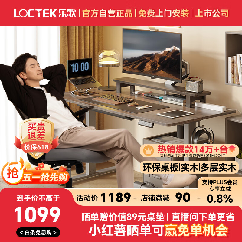 乐歌电动升降电脑桌站立式书桌家用台式写字桌书桌E2灰胡桃木色1.2m桌价格:1189.00元!