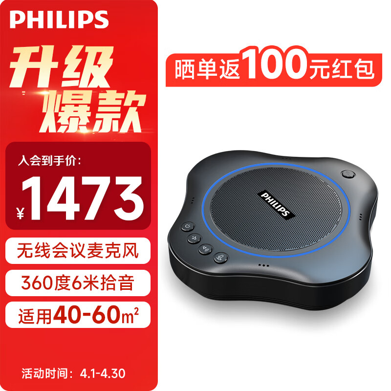 飞利浦全向麦克风 6米拾音半径会议麦克风 无线音箱桌面扬声器适用40-60㎡无线带电池0500PLUS价格:1473.00元!