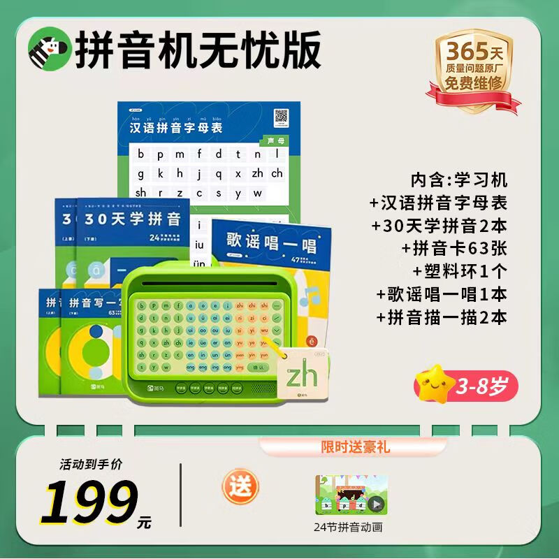斑马拼音学习早教神器 一年级有声点读机 儿童玩具男女孩生日礼物价格:199.00元!