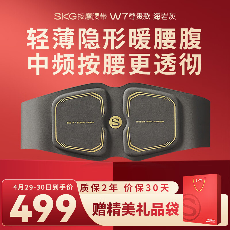 skg腰部按摩器 无线热敷腰腹部 智能按摩仪多功能揉捏护腰带 送男女友生日母亲节礼物 W7尊贵海岩灰价格:662.00元!