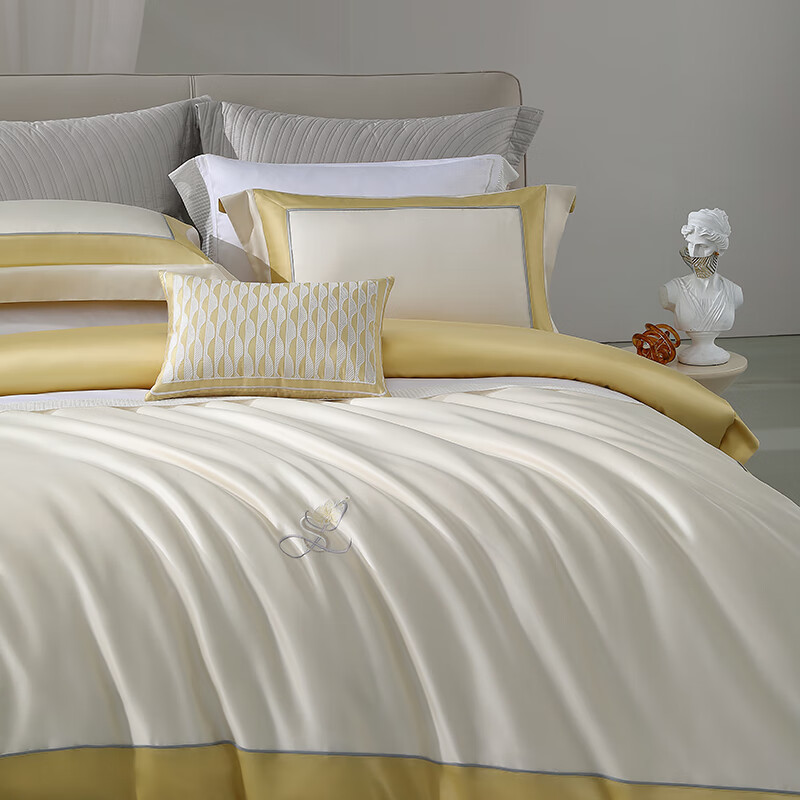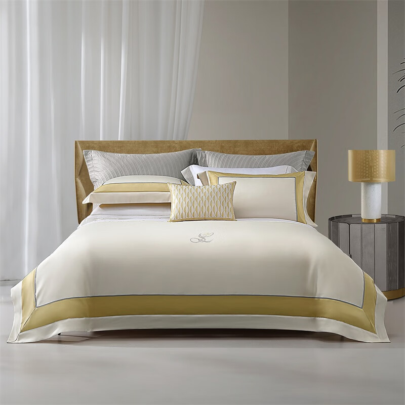 水星家纺140支双股长绒棉床上四件套酒店轻奢简约高支贡缎1.8米床奢假日白价格:2999.00元!