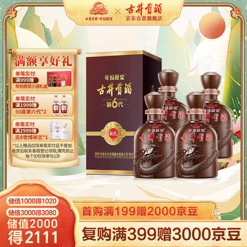 古井贡酒年份原浆 献礼版 浓香型白酒 40.6度425ml*4瓶 整箱装价格:441.18元!