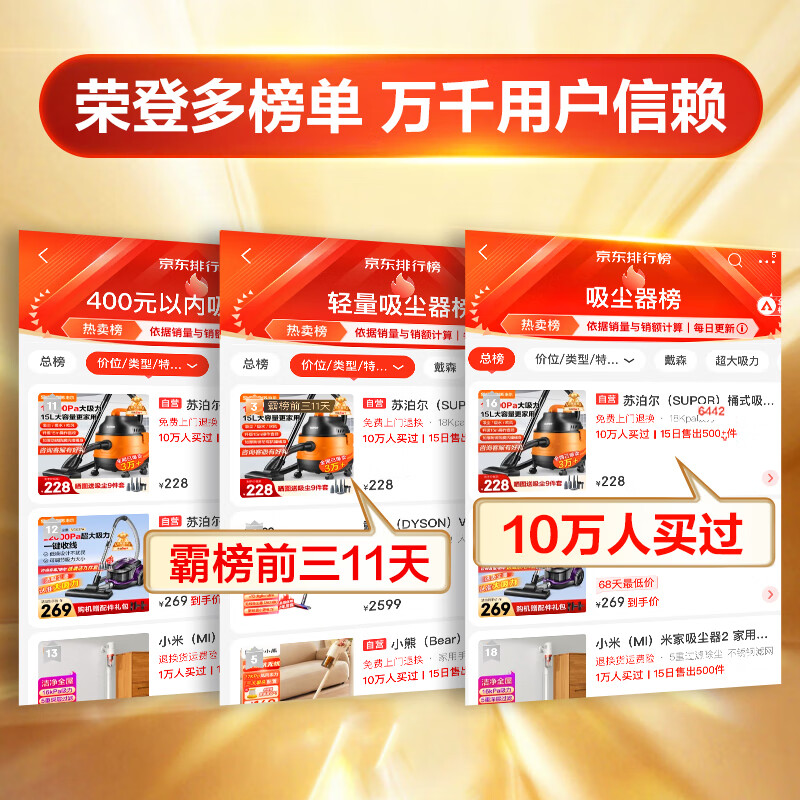 苏泊尔(SUPOR)桶式吸尘器家用强劲大吸力工业吸尘器开荒干湿吹吸尘机15L大容量EVCB-70A价格:228.00元!