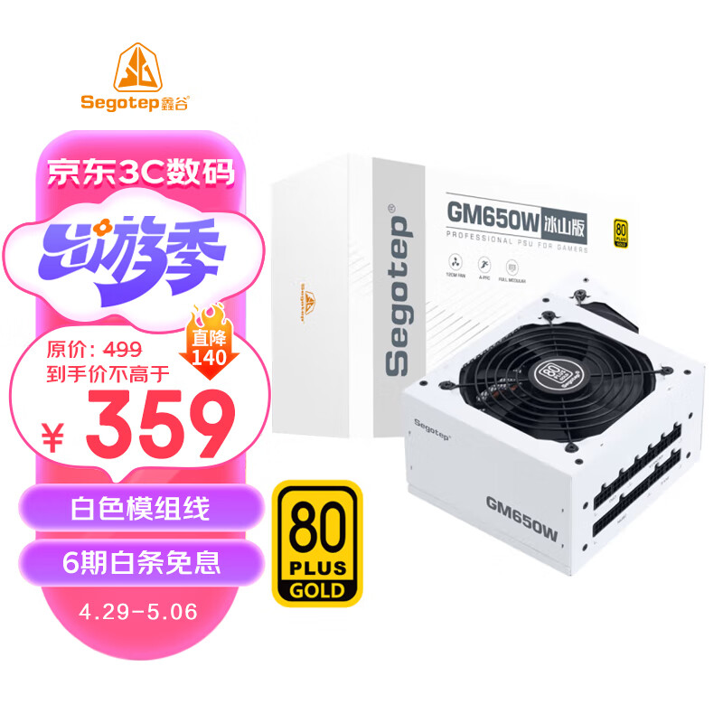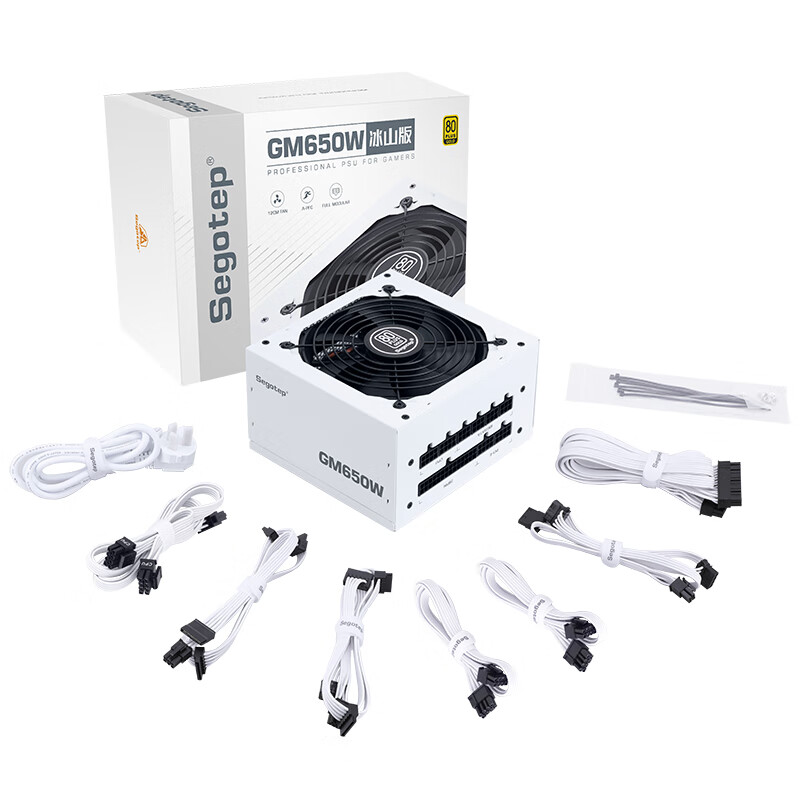鑫谷(segotep)GM650W冰山版金牌全模组电源(80plus金牌/白色模组线/多重保护/宽幅台式电脑主机箱电源)价格:349.00元!