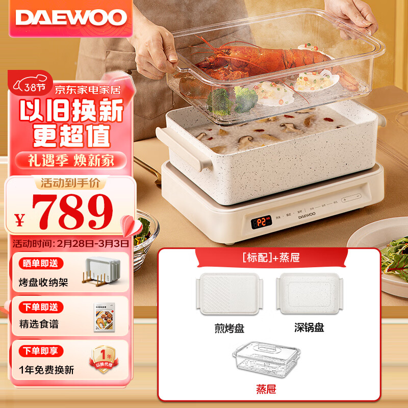 大宇(DAEWOO)多功能锅网红料理锅 家用电火锅电热炒锅电烧烤炉电蒸锅电煮锅 S11PRO(标配+蒸屉)价格:789.00元!
