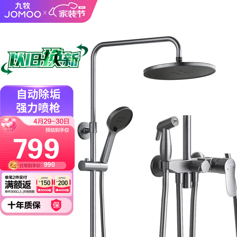 九牧 JOMOO 淋浴花洒套装 枪灰色全自动除垢喷枪花洒36484-526/HBS-1价格:949.00元!