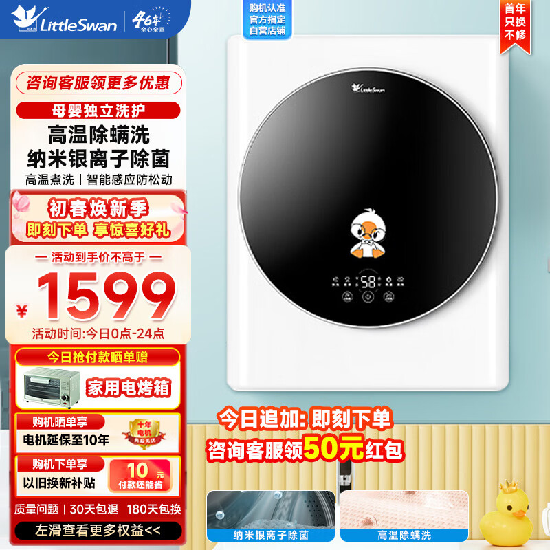 小天鹅壁挂式洗衣机 3公斤迷你滚筒全自动 银离子除菌 婴儿宝宝儿童内衣小洗衣机 以旧换新 TG30V820MW价格:1548.00元!