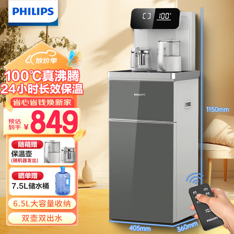 飞利浦(PHILIPS) 茶吧机 立式饮水机全自动智能下置水桶办公室家用饮水机 加热调温遥控自动上水 ADD4888价格:849.00元!