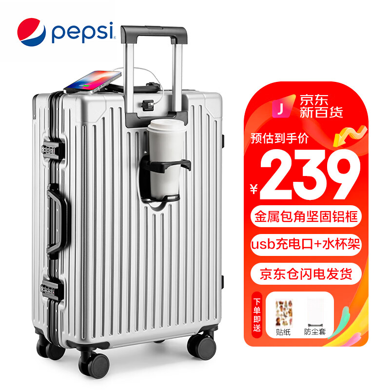 百事(PEPSI)行李箱男铝框拉杆箱女20英寸旅行箱大容量万向轮学生商务密码皮箱价格:239.00元!