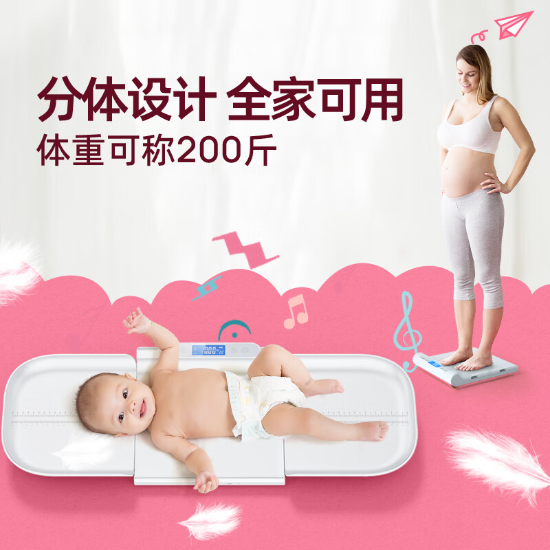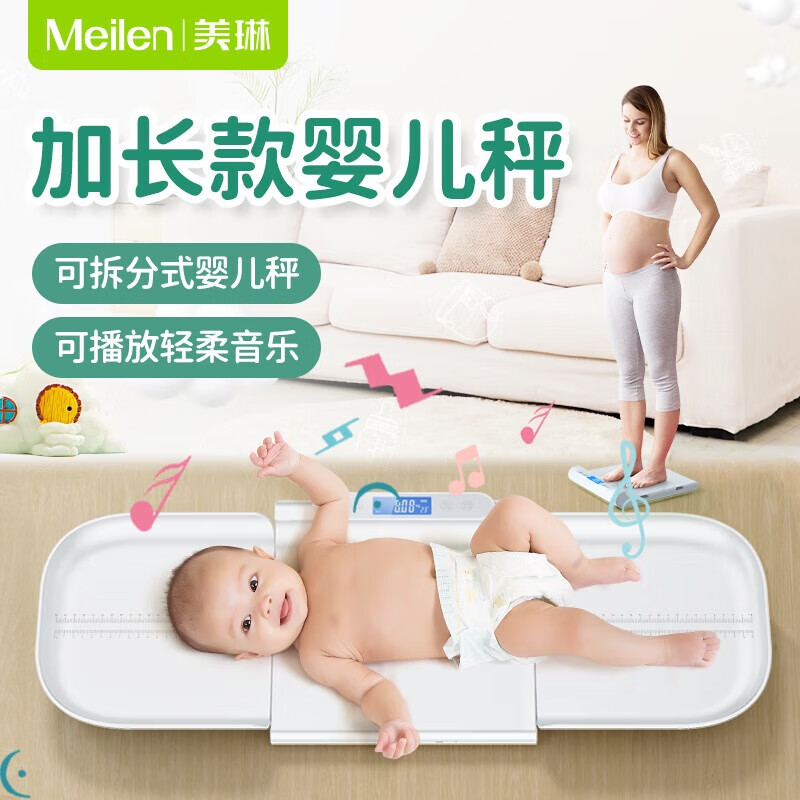 Meilen 智能婴儿秤体重秤母婴秤高精准称重电子秤新生儿婴儿宠物儿童身高宝宝秤孕妈妈减肥礼品 【升级加长款】可量身高70cm,母婴通用,分体设计价格:159.00元!