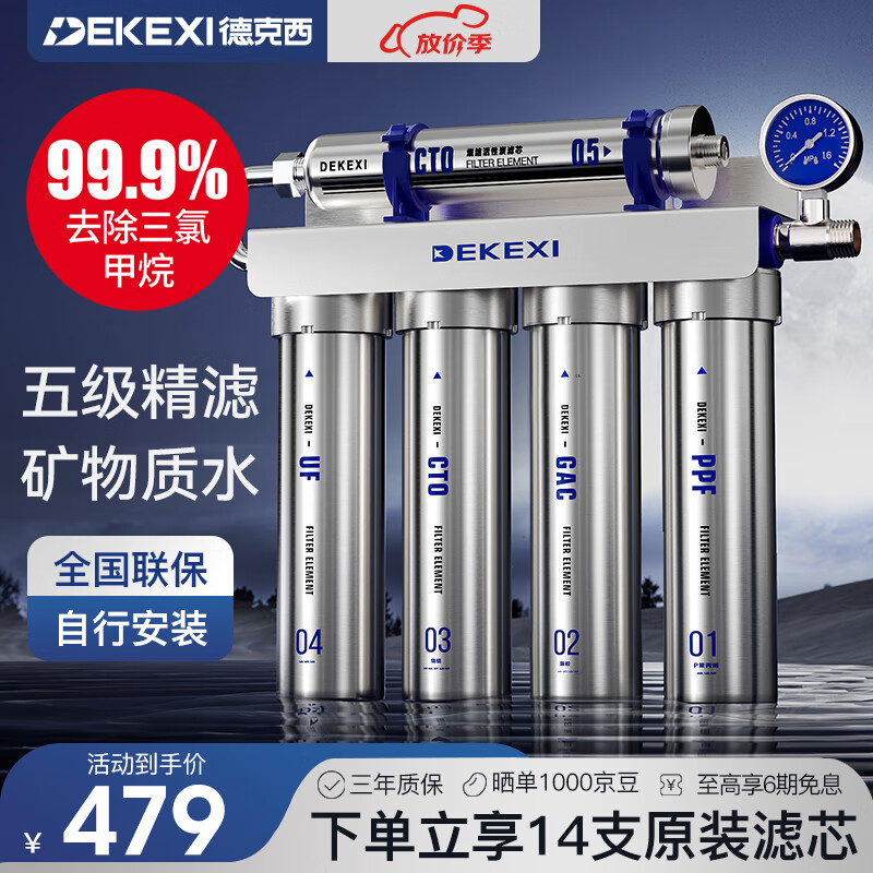 德克西(DEKEXI) 净水器家用直饮厨房自来水前置过滤器超滤净水机不锈钢净化器水龙头价格:479.00元!