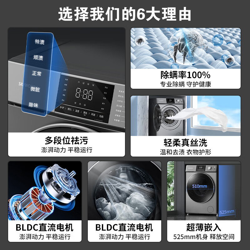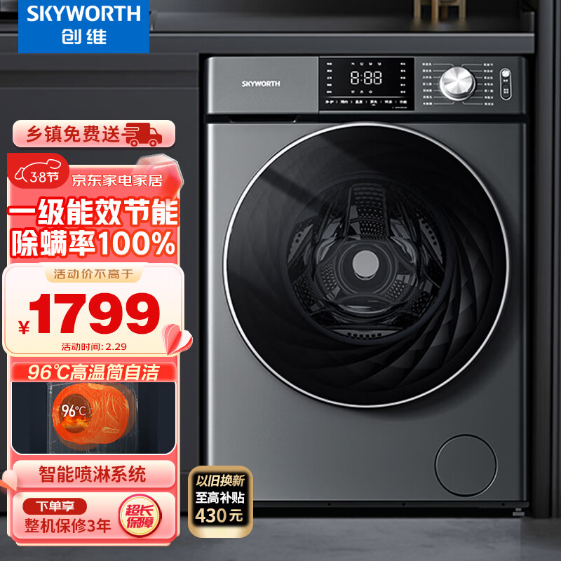 创维(SKYWORTH) 10公斤 滚筒洗衣机全自动 家用一级变频低噪节能高温除尘除螨 15分快洗 F100KS价格:1799.00元!