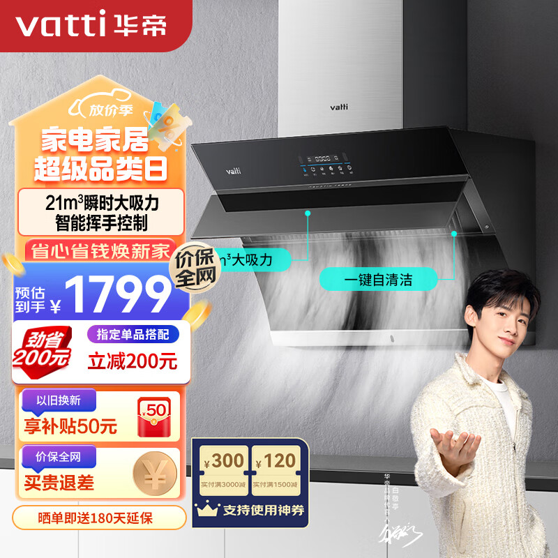 华帝(VATTI)抽油烟机 侧吸式 小尺寸 家用吸油烟机 21风量大吸力 智能挥手智控 一键自清洁 以旧换新 i11135价格:1799.00元!