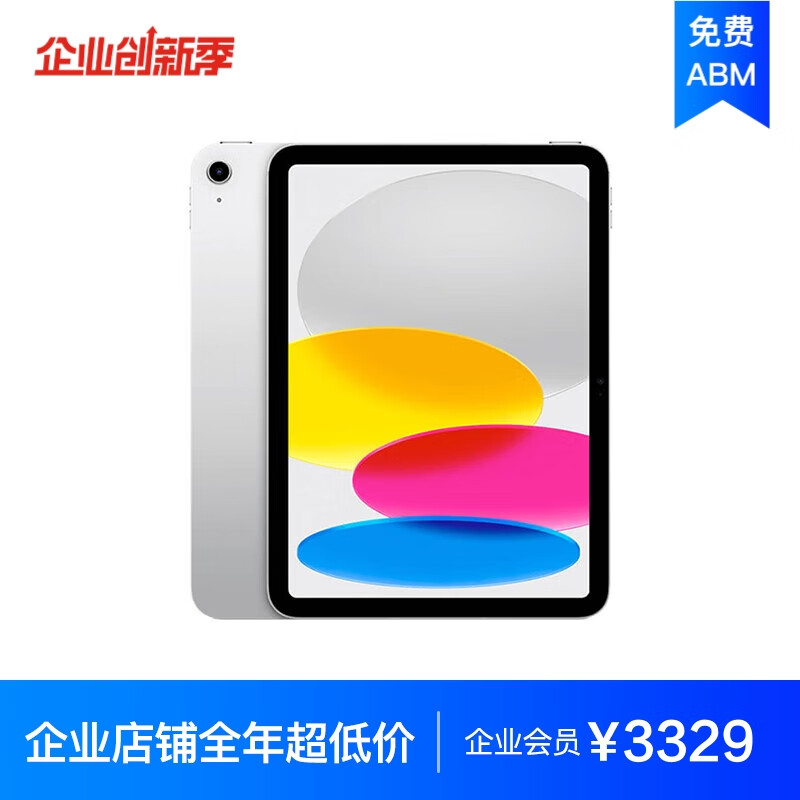 Apple iPad 10.9英寸平板电脑 2022年款(64GB WLAN版/A14芯片/1200万像素/iPadOS MPQ03CH/A)银色*企业专享价格:3599.00元!