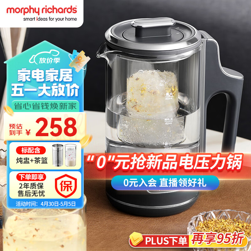 摩飞电器(Morphyrichards)养生壶 便携迷你煮茶器 烧水壶养生杯 小型办公室家用多功能煮茶壶一体式热水壶0.6L MR6086 灰价格:258.00元!
