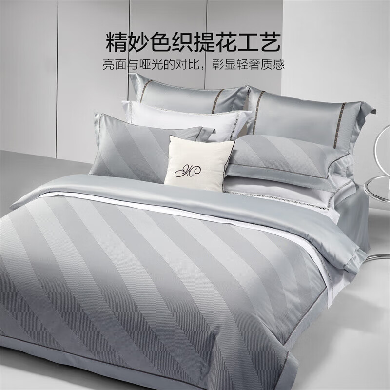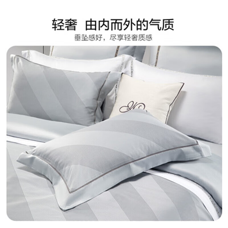 水星家纺100支长绒棉四件套纯棉被套床单四件套床上用品全棉被罩1.8温玉价格:2599.00元!