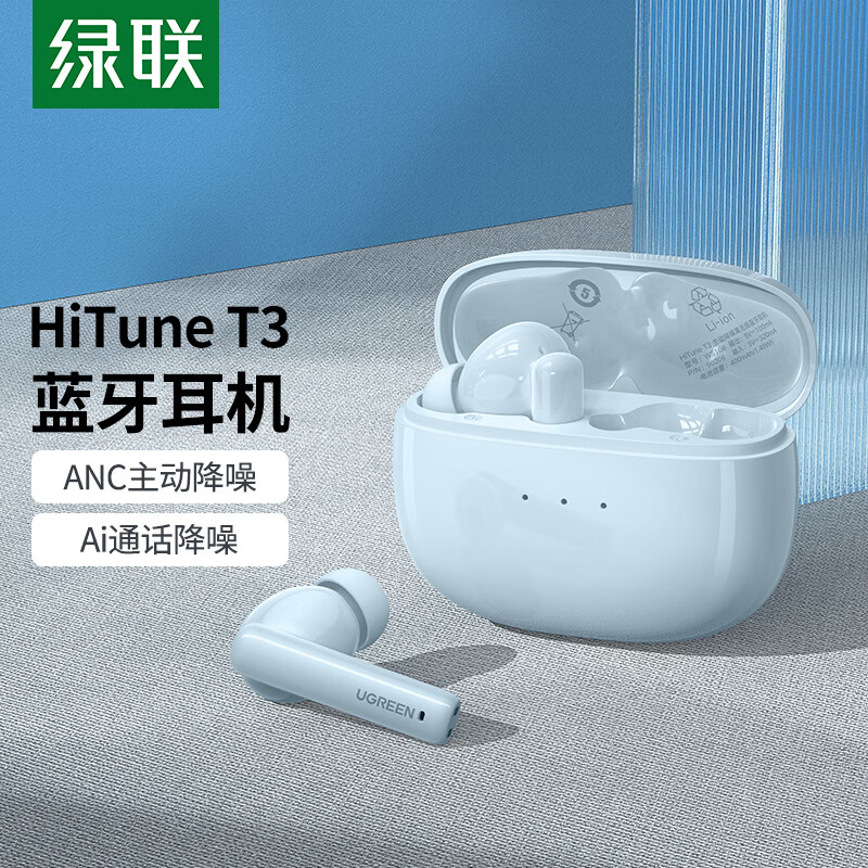 绿联 HiTune T3真无线蓝牙耳机 ANC主动降噪音乐耳机 通话降噪长续航 通用苹果华为小米手机 90598价格:199.00元!