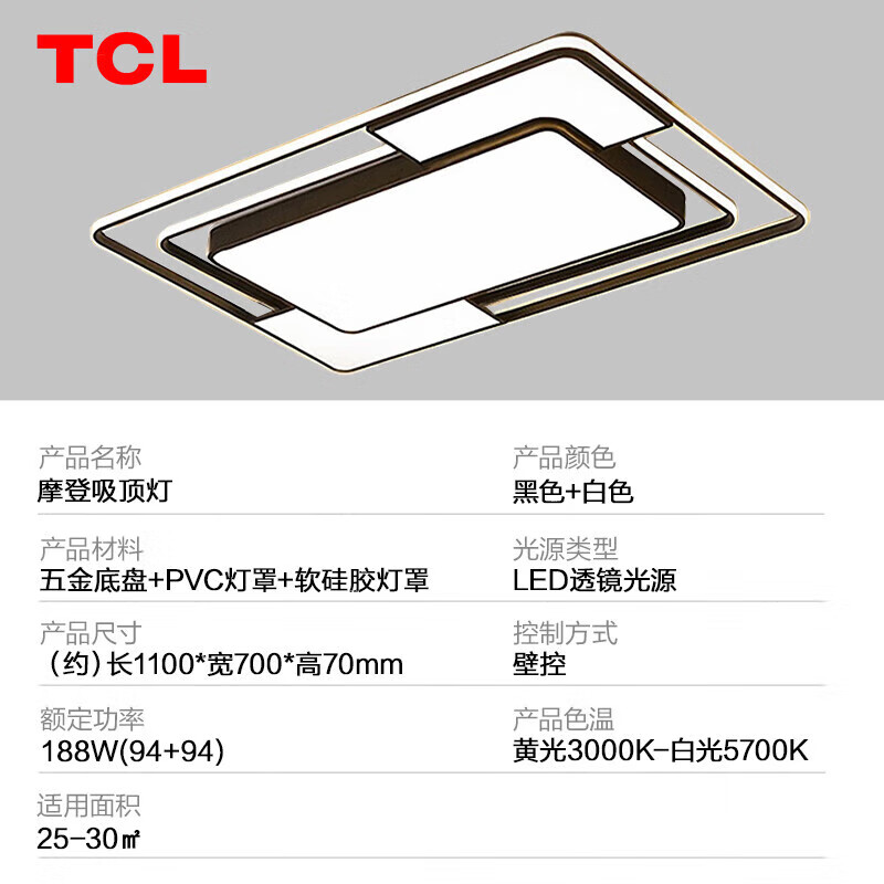 TCL客厅吸顶灯LED北欧大厅灯具摩登188W三色调光 直径1.1米价格:439.00元!