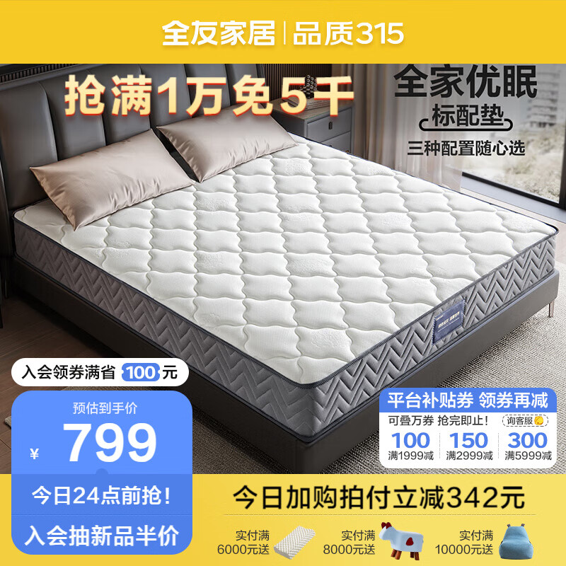 全友家居 3D环保椰棕弹簧床垫硬偏硬 双人床棕垫厚床垫105190-2价格:1141.43元!